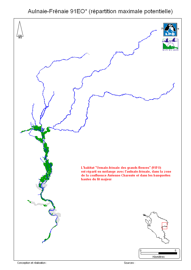 Cet habitat n’est présent qu'en basse vallée de l'Antenne - dans la zone d’influence des grandes crues du fleuve - ainsi que sur les banquettes hautes du lit majeur de l'Antenne où il se mêle à l'habitat 91EO* selon les variations intraparcellaires du niveau topographique.